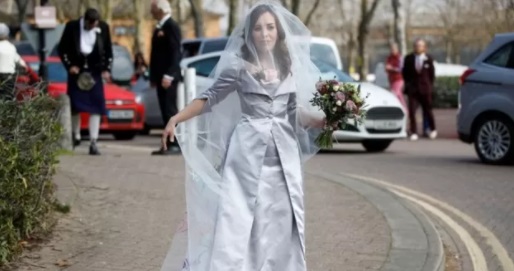 وكانت موريس ترتدي فستان زفاف من تصميم فيفيان ويستوود، التي أطلقت حملة لوقف تسليم أسانج للولايات المتحدة.