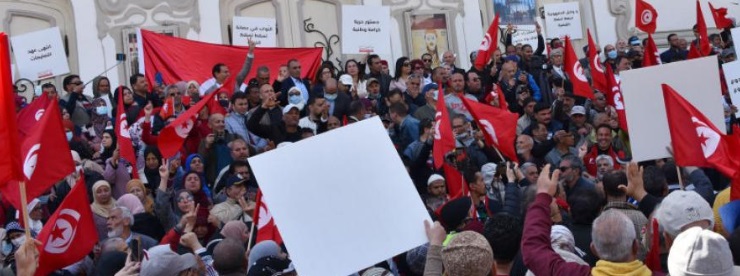 وما زالت المعارضة تعبئ الشارع، رغم حالة الانشطار المجتمعي والانقسام الذي شج المعارضة حول مخيمين مناهضين للانقلاب: مواطنون ضد الانقلاب (جبهة الخلاص الوطني) وتنسيقية الأحزاب الديمقراطية الاجتماعية. ورغم أن المخيمين يعارضان الانقلاب، فإن حالة الجفاء بينهما حادّة على خلفية ضرورة استبعاد حركة النهضة، أو على الأقل ربط قبولها بضرورة النقد الذاتي، وهو ما ترفضه الحركة، معتبرة أن المسؤولية جماعية، وأن النقد الذاتي هذا لا يجري في مناخات الانقلاب.