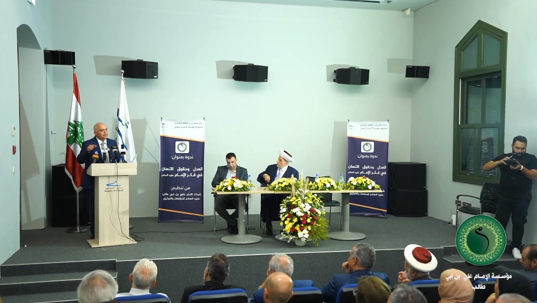 وتميزت الندوة بالكلمة التي ألقاها كل من رئيس اللجنة الوطنية لليونيسكو في لبنان الأديب الاستاذ شوقي ساسين الذي إستفاض في شرح فكر ومفهوم الإمام علي (ع) الانساني والحضاري وإرسائه المبادىء التي شكلت نقطة إنطلاق بالنسبة الى شرعة حقوق الانسان، وكان لافتا ان شخصية كالأديب ساسين الذي ينتمي الى المذهب المسيحي ان يقدم شرحا عميقا ويغوص في تفسير مكونات فكر الإمام علي (ع) ما شكل علامة فارقة تؤكد على مدى دور وتأثير فكر الإمام في إرساء المفهوم الانساني ومبدأ العدالة في الحكم وفي المجتمع وفي السلوك الانساني.