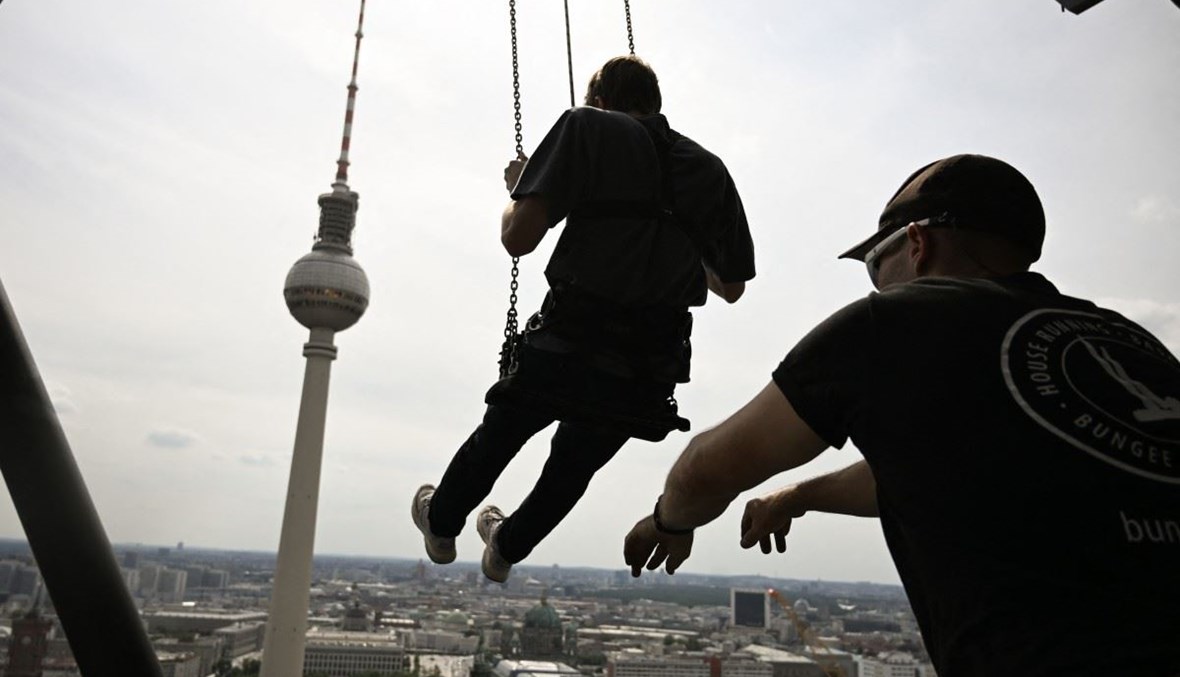 عندما ينظر باسكال فينت إلى الفراغ تحت قدميه، يبدأ بالتنفيس عن خوفه من خلال الضحك: فعلى ارتفاع 120 متراً، يختبر هذا الألماني الثلاثيني تجربة جديدة في برلين، وهي أعلى أرجوحة في أوروبا.