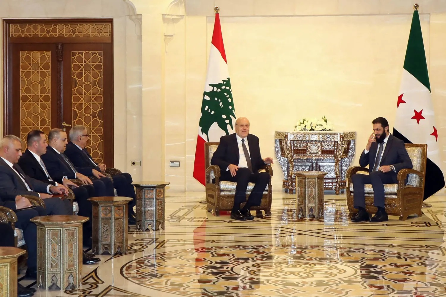من جهته، صرح ميقاتي أنه ناقش مع الشرع العلاقات الثنائية بين البلدين والتحديات الإقليمية التي تواجههما. وأكد أن لبنان يدعم تطلعات الشعب السوري نحو الاستقرار والتنمية، مضيفًا: "طالما كانت سوريا بخير، فإن لبنان بخير".