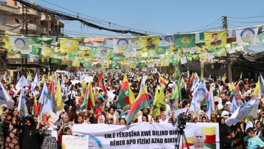 وكانت لجان "الإدارة الذاتية" قد دعت أهالي القامشلي للمشاركة في تجمع جماهيري تحت شعار "حماية المكتسبات وتحديد المصير". لكن المشاركين فوجئوا بتحويل الخطابات إلى التركيز على المطالبة بحرية أوجلان والهجوم على دمشق وأنقرة.