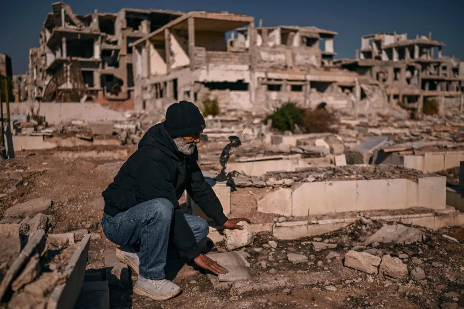 يحاول فلسطينيون في مخيم اليرموك جنوبي دمشق البحث عن قبور أحبائهم وسط الدمار الذي خلفته الحرب.