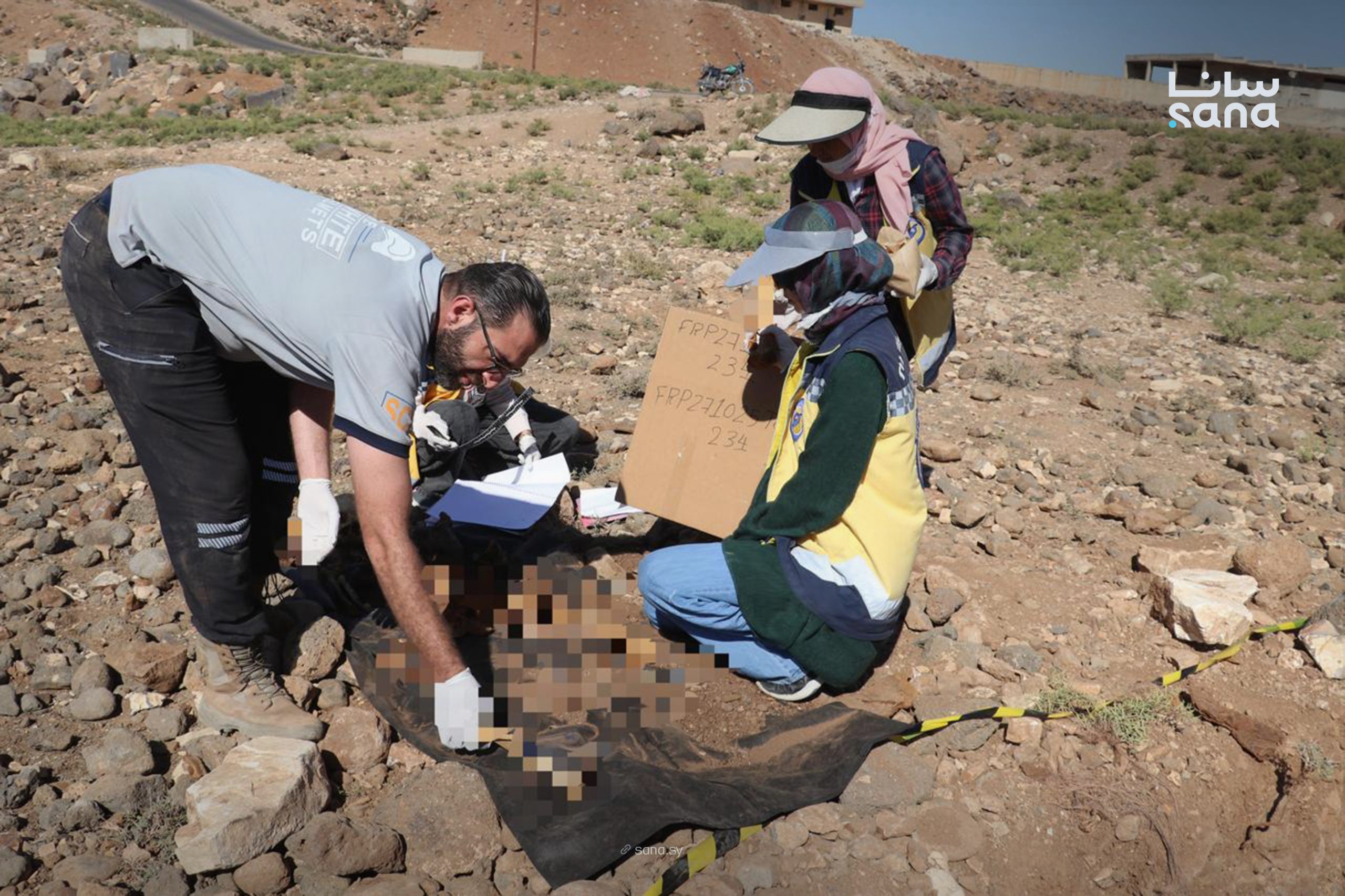 حمص: رفات 8 مدنيين بينهم أطفال ونساء في منطقة القريتين، قرب مواقع كانت تحت سيطرة النظام السابق.