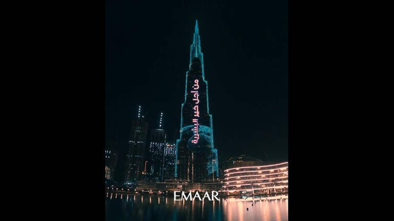 إزدان برج خليفة، أحد أبرز المعالم السياحية في دولة الإمارات العربية المتحدة ، مساء أمس، بشعار "صلاة من أجل الإنسانية" في مواجهة كورونا.